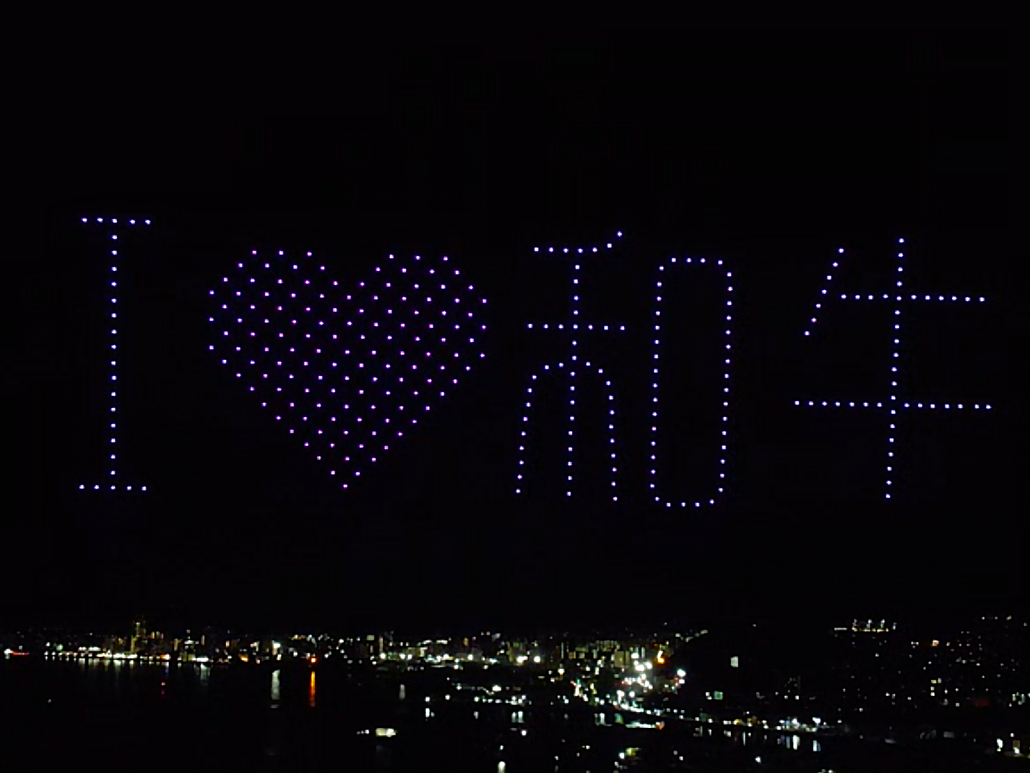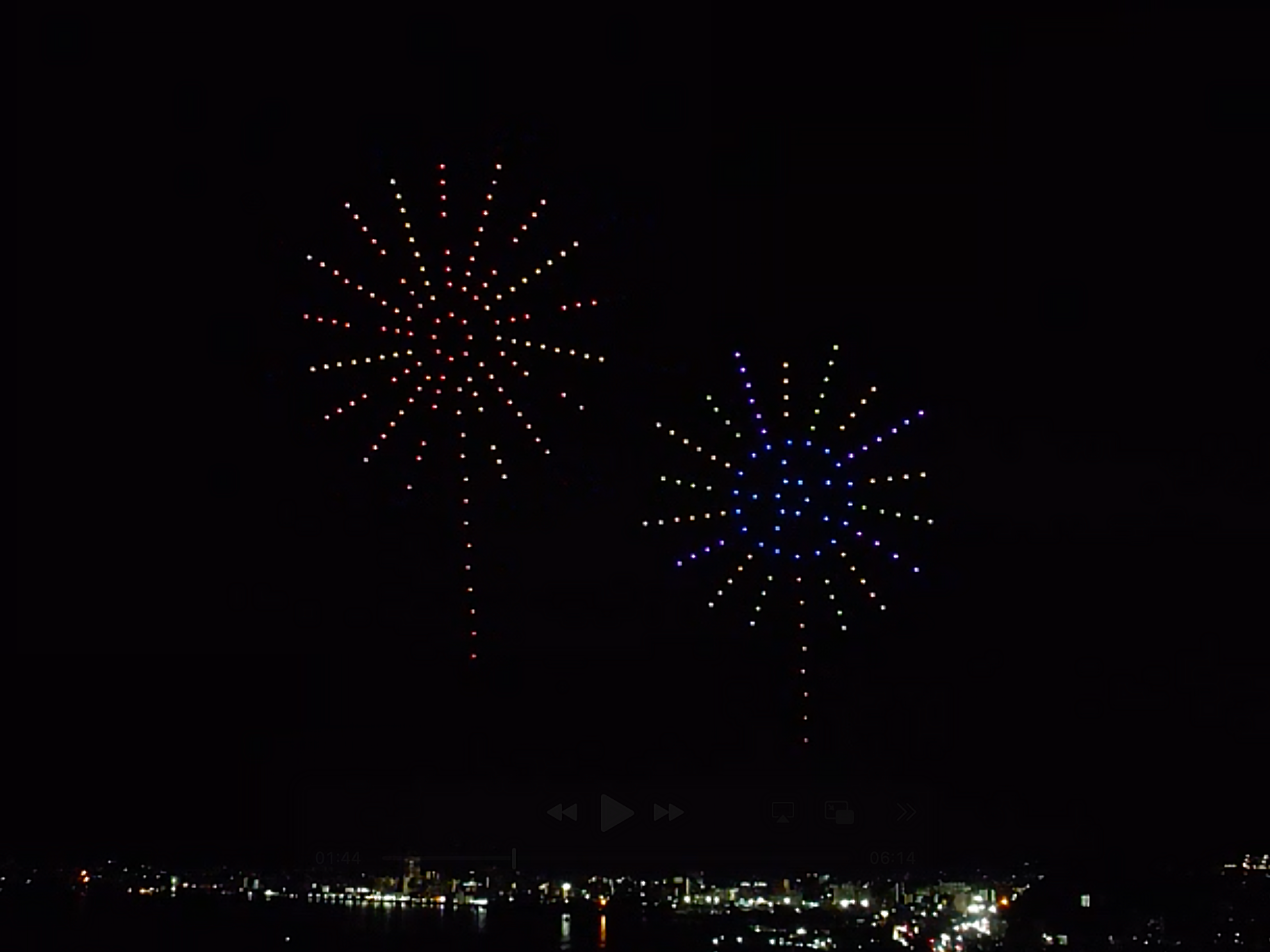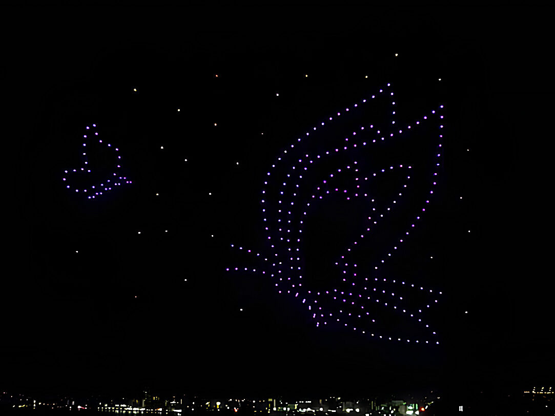 また、イベント最終日に予定されていた花火大会が中止となったため、北九州で初めてのドローンショー開催で非常に反響が良かったこともあり、急遽、翌日13日(月)にも緊急開催し、会場を盛り上げるお手伝いをさせていただきました。